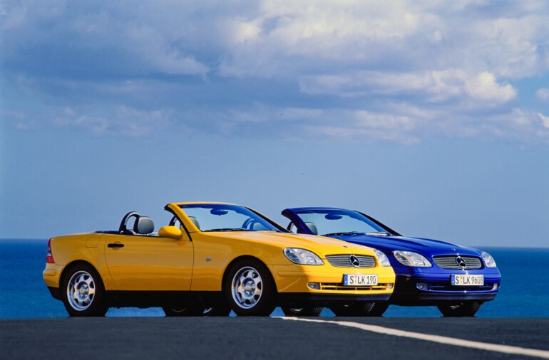 Im April 1996 wurde der Mercedes-Benz SLK im Rahmen des Turiner Automobilsalons erstmals der Öffentlichkeit präsentiert. Bereits zwei Jahre zuvor hatten die beiden Designer Bruno Sacco und Peter Pfeiffer mit ihrem Entwurf zur SLK Studie für Wirbel gesorgt. Wie der Mazda MX-5 steht auch der Zweisitzer aus Stuttgart für Freiheit und Fahrspaß. Darüber hinaus gilt das kompakte Fahrzeug auch in punkto Technik als Vorreiter, denn mit seinem faltbaren Stahldach als Alternative zum klassischen Stoffverdeck gelang es Mercedes-Benz, Coupé und Cabrio in einem Fahrzeug zu vereinen.